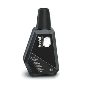 Μαύρο μελάνι σε μπουκάλι Trodat 7750 για τύπωμα σε υφάσματα. Έχει γρήγορο στέγνωμα και είναι ανθεκτικό στο πλυντήριο εως και τους 95°C.