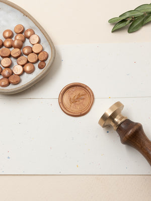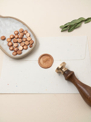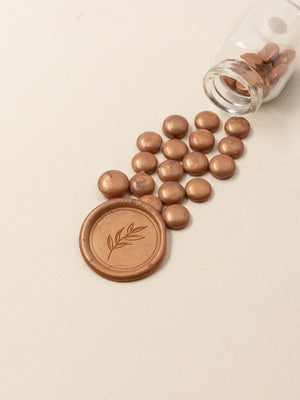 Κερί βουλοκέρι με χρώμα Χάλκινο σε σχήμα μικρής χάντρας. Οι χάντρες είναι συσκευασμένες σε γυάλινο βαζάκι και περιέχει συνολικά 32 χάντρες. Ιδανικό για την σφράγιση επιστολών, φακέλων, γαμήλιων προσκλήσεων & για συσκευασίες.