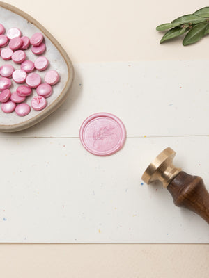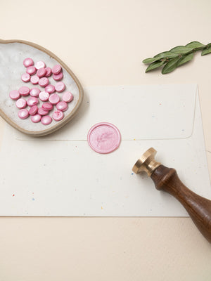 Κερί βουλοκέρι με χρώμα Ροζ σε σχήμα μικρής χάντρας. Οι χάντρες είναι συσκευασμένες σε γυάλινο βαζάκι και περιέχει συνολικά 32 χάντρες. Ιδανικό για την σφράγιση επιστολών, φακέλων, γαμήλιων προσκλήσεων & για συσκευασίες.