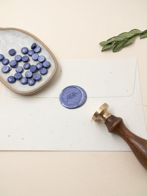 Κερί βουλοκέρι με χρώμα Μεταλλικό Μπλε σε σχήμα μικρής χάντρας . Οι χάντρες είναι συσκευασμένες σε γυάλινο βαζάκι και περιέχει συνολικά 32 χάντρες. Ιδανικό για την σφράγιση επιστολών, φακέλων, γαμήλιων προσκλήσεων & για συσκευασίες.