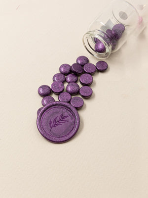 Κερί βουλοκέρι με χρώμα Μεταλλικό Μωβ σε σχήμα μικρής χάντρας. Οι χάντρες είναι συσκευασμένες σε γυάλινο βαζάκι και περιέχει συνολικά 32 χάντρες. Ιδανικό για την σφράγιση επιστολών, φακέλων, γαμήλιων προσκλήσεων & για συσκευασίες.