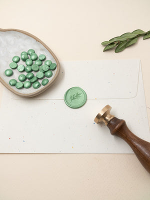 Κερί βουλοκέρι με χρώμα Πράσινο Περλε σε σχήμα μικρής χάντρας. Οι χάντρες είναι συσκευασμένες σε γυάλινο βαζάκι και περιέχει συνολικά 32 χάντρες. Ιδανικό για την σφράγιση επιστολών, φακέλων, γαμήλιων προσκλήσεων & για συσκευασίες.