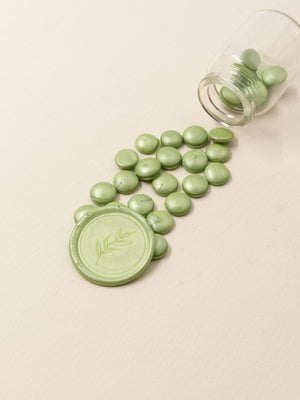 Κερί βουλοκέρι με χρώμα Πράσινο Λαιμ σε σχήμα μικρής χάντρας. Οι χάντρες είναι συσκευασμένες σε γυάλινο βαζάκι και περιέχει συνολικά 32 χάντρες. Ιδανικό για την σφράγιση επιστολών, φακέλων, γαμήλιων προσκλήσεων & για συσκευασίες.