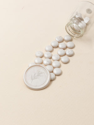 Κερί βουλοκέρι με χρώμα Άσπρο σε σχήμα μικρής χάντρας. Οι χάντρες είναι συσκευασμένες σε γυάλινο βαζάκι και περιέχει συνολικά 32 χάντρες. Ιδανικό για την σφράγιση επιστολών, φακέλων, γαμήλιων προσκλήσεων & για συσκευασίες.